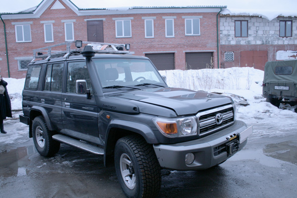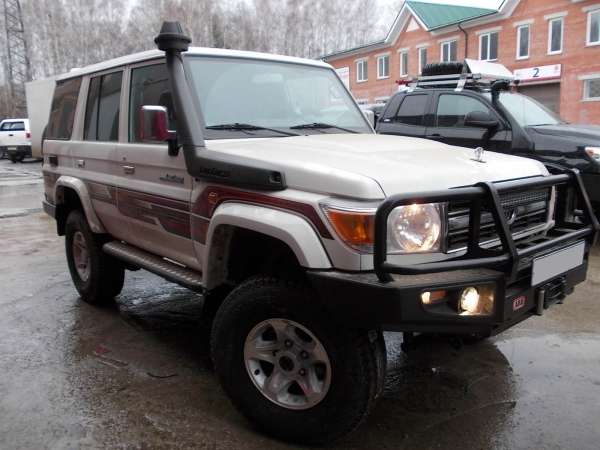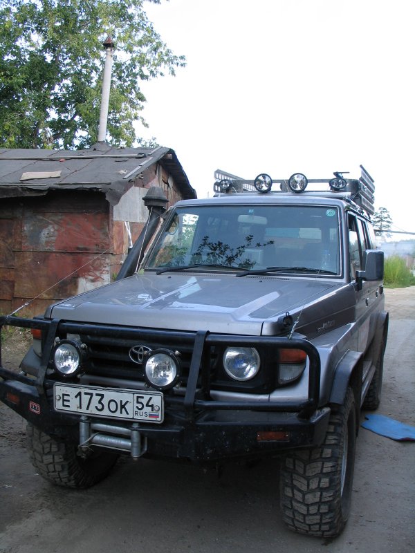 Toyota Land Cruiser 76 - задний бампер с калиткой и алюминиевый экспедиционный багажник собственного производства, светодиодные фары, силовыеподножки, защита полностью, шины зимние 33" Geolandar